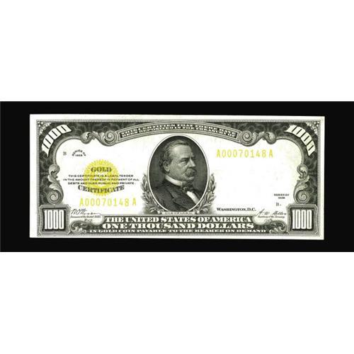 <B>Fr. 2408 $1000 1928 Gold Certificate. Choice Crisp Uncirculated.</B></I><BR>A delightful $1000 Gold with bright paper and a deep orange overprint. A couple of pinholes have been closed.