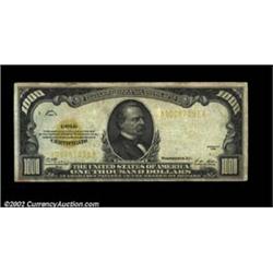 Fr. 2408 $1000 1928 Gold Certificate. Very Fine.There is some foxing, especially around the margins, but this high end circulated example is every bit as nice or nicer than the piece which realized over $4000 in our last auction. Important notice: We expect to be auctioning lots at the rate of 200-250 per hour. Sometimes eBay Premier live bid software cannot keep up with that pace, so we strongly recommend that you place a realistic proxy bid now as insurance to avoid disappointment. Also please note that all Heritage/CAA lots purchased through eBay Premier carry a 20% Buyer's Premium. Please make sure you read the Terms and Conditions.