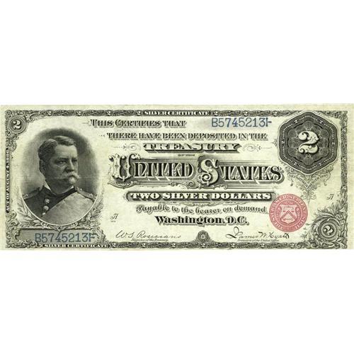 <B>Fr. 241 $2 1886 Silver Certificate Extremely Fine.</B></I> The folds that account for the grade are not easily seen and as a result this note faces up like it is AU.<BR><I>From The Plymouth Rock Collection</B></I>