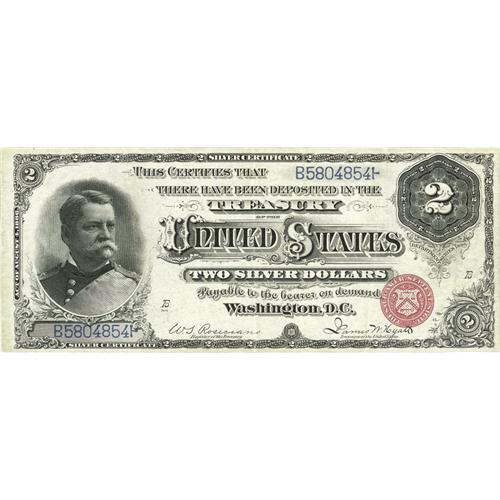 <B>Fr. 241 $2 1886 Silver Certificate Extremely Fine.</B></I> Three folds do little to interrupt the design details or overall eye appeal. Some light foxing at the margins.