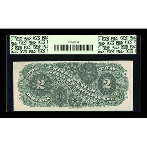 <B>Fr. 242 $2 1886 Silver Certificate PCGS Choice New 63PPQ.</B></I> This example comes from the run that has supplied generations of collectors with uncirculated Hancock deuces. It is bright and appears fully original through the PCGS holder, with only its slightly skimpy top margin holding it back from a substantially higher grade. <BR><BR><b>Shipping:</b> Coins & Currency (<a target="_blank" href="http://www.heritageauctions.com/common/shipping.php">view shipping information</a>)