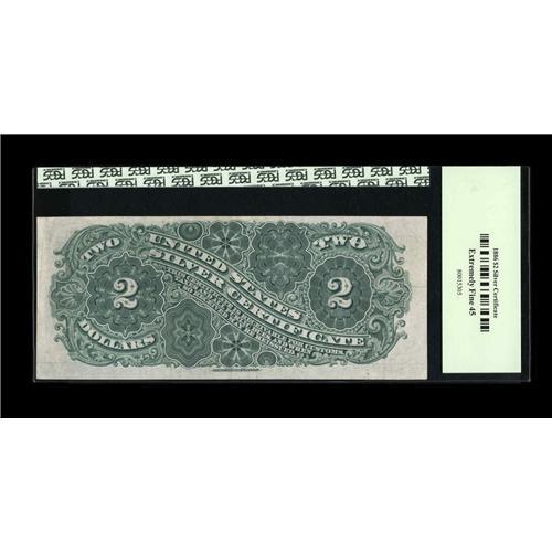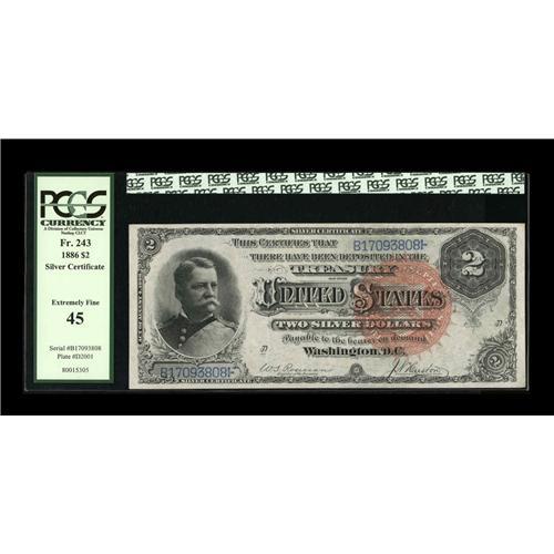 <B>Fr. 243 $2 1886 Silver Certificate PCGS Extremely Fine 45.</B></I> A very well margined note, with a few barely visible folds.