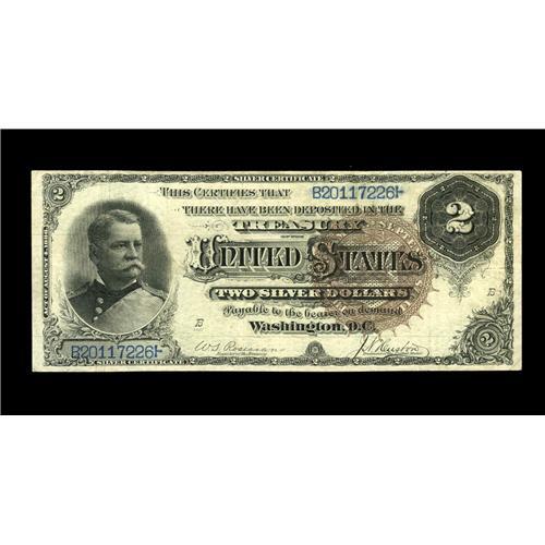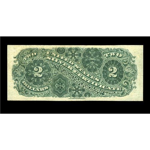 <B>Fr. 244 $2 1886 Silver Certificate Extremely Fine.</B></I> The first impression is of a note near Uncirculated, until further inspection reveals some hidden folds, both on the vertical and horizontal.