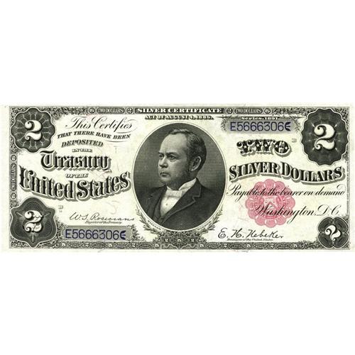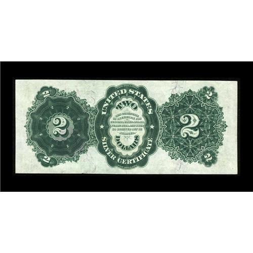 <B>Fr. 245 $2 1891 Silver Certificate About New.</B></I> A single fold, over an inch to the right of Windom is the only grade limiting factor. The color on front and back is ample though the surfaces are a touch soft.<BR><I>From The Plymouth Rock Collection</B></I>