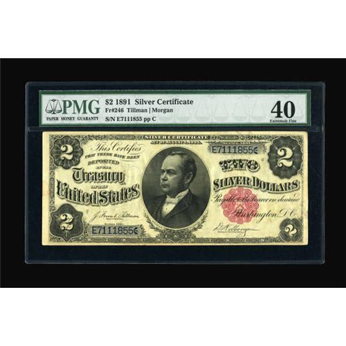 <B>Fr. 246 $2 1891 Silver Certificate PMG Extremely Fine 40.</B></I> The wear certainly agrees with the assigned grade on this high end Windom.<B><BR></B></I><I>From The Warren Marshall Collection</B></I><BR><BR><b>Shipping:</b> Coins & Currency (<a target="_blank" href="http://www.heritageauctions.com/common/shipping.php">view shipping information</a>)