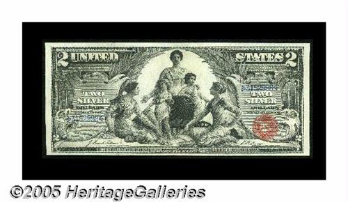 <B>Fr. 247 $2 1896 Silver Certificate Extremely Fine.</B></I> The proverbial fine toothed comb comes up with three faint folds on this pretty Two.