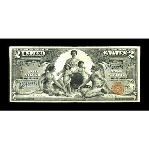 <B>Fr. 247 $2 1896 Silver Certificate Very Fine.</B></I> Though a touch flat, the design details are still fully visible and quite attractive.<BR><BR><b>Shipping:</b> Coin/Currency (<a target="_blank" href="http://www.heritageauctions.com/common/shipping.php">view shipping information</a>)
