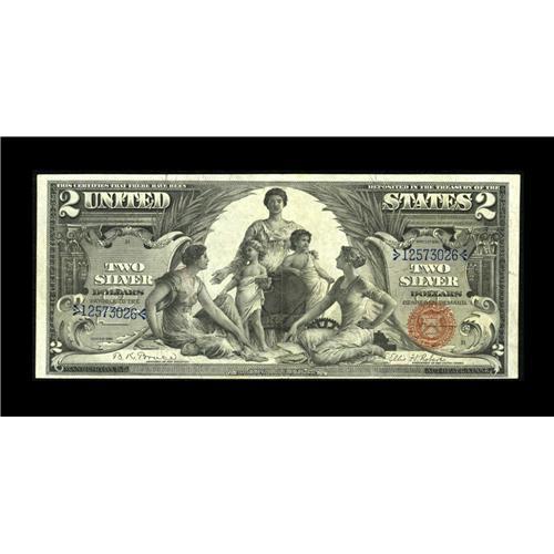 <B>Fr. 248 $2 1896 Silver Certificate Extremely Fine.</B></I> A pleasing mid-grade Educational Deuce that exhibits three folds with decent margins. Bright colors on still crisp surfaces deliver excellent eye appeal.<BR><BR><b>Shipping:</b> Coin/Currency (<a target="_blank" href="http://www.heritageauctions.com/common/shipping.php">view shipping information</a>)