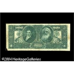 Fr. 248 $2 1896 Silver Certificate Fine. A missing lowe <B>Fr. 248 $2 1896 Silver Certificate Fine.</B></I> A missing lower right corner tip is this well circulated Two Dollar Educational's only problem. The missing tip affects a blank margin area only and does not intrude into the design on either side. <BR><BR><B>Important notice:</B> Heritage usually auctions material at the rate of 200-250 lots per hour. On some occasions eBay Live bid software or the Internet may not be able to keep up with the pace of the auction. We recommend placing a realistic absentee bid now as insurance to avoid disappointment. Occasionally the auctioneer may eliminate or reject an eBay Live bid, and the auctioneer may also reopen a lot after the close of the eBay live bidding (usually because we missed an audience bid), and may reject your bid even if it shows you as the winning bidder. By bidding via eBay Live, you agree that Heritage may award the lot to another bidder at its sole discretion under the circumstances described above or any other reasonable circumstances. Since eBay bids are not shown to us until we open the lot on the floor, we treat those bids just like floor bids. In most cases the floor responds before the eBay bid is presented to us, due to Internet lag time, so for consistency we have made it a policy that floor bids are always considered first over tie eBay live bids. Also please note that all Heritage lots purchased through eBay Live carry a 20% Buyer's Premium. Please make sure you read the Terms and Conditions before you bid. This lot is being auctioned in conjunction with a live floor auction by Heritage Galleries & Auctioneers. All final auction and invoice information will be supplied by Heritage Galleries & Auctioneers, and all other information should be considered preliminary. Lot:17378