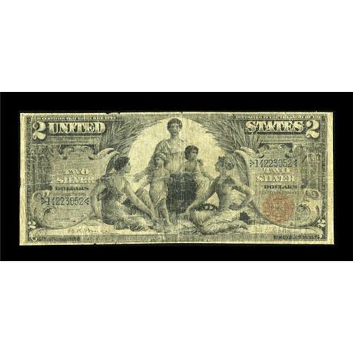 <B>Fr. 248 $2 1896 Silver Certificate Good.</B></I> Very heavily circulated, and either starched or plasticized in an ill-advised attempt to stiffen the paper. <BR><BR><b>Shipping:</b> Coins & Currency (<a target="_blank" href="http://www.heritageauctions.com/common/shipping.php">view shipping information</a>)