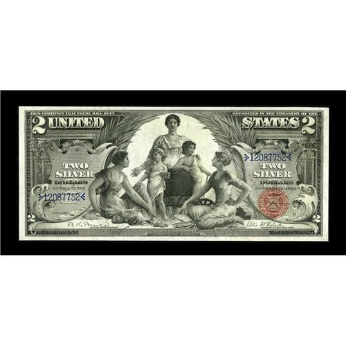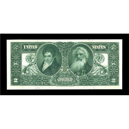 <B>Fr. 248 $2 1896 Silver Certificate PMG Gem Uncirculated 65 EPQ.</B></I> A nicely centered and perfectly fresh $2 Educational which has received the much sought after Exceptional Paper Quality designation from PMG. We had the opportunity to view this note outside the holder and can attest to its complete originality and great paper surfaces.<BR><BR><b>Shipping:</b> Coin/Currency (<a target="_blank" href="http://www.heritageauctions.com/common/shipping.php">view shipping information</a>)