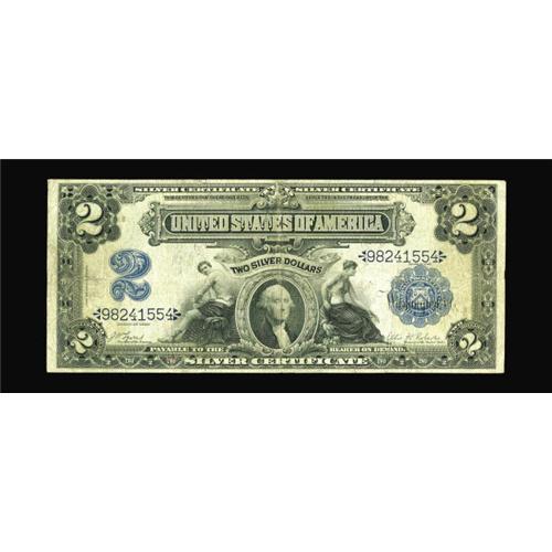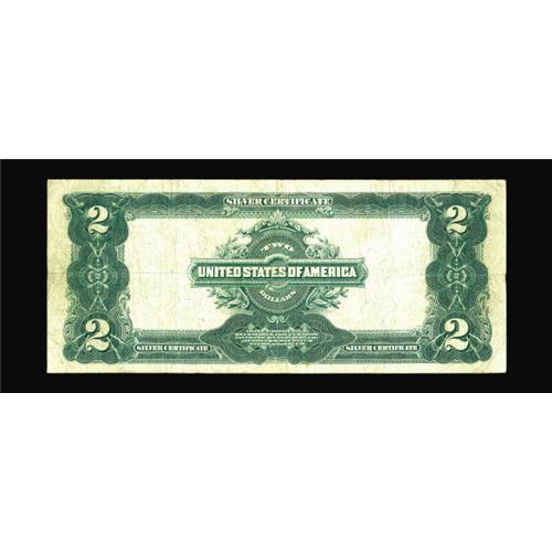 <B>Fr. 249 $2 1899 Silver Certificate Fine-Very Fine.</B></I> According to the Sullivan census data only four examples were known until the discovery of this piece. The note is complete with some light soiling throughout.