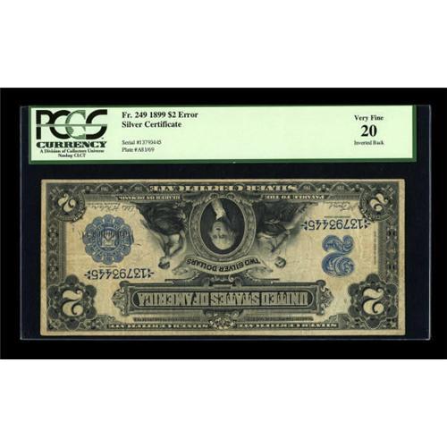 <B>Fr. 249 $2 1899 Silver Certificate PCGS Very Fine 20.</B></I> This is one of only four inverts known for this Friedberg number, and the first we have had the pleasure to offer at auction.<BR><I>From The Amelia Island Collection.</B></I><BR><BR><b>Shipping:</b> Coins & Currency (<a target="_blank" href="http://www.heritageauctions.com/common/shipping.php">view shipping information</a>)