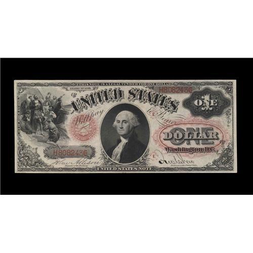 <B>Fr. 25 $1 1875 Legal Tender Very Fine-Extremely Fine.</B></I> A new number to the Census for this rare piece bringing the total known to just over twenty examples. This one has beautiful margins and a strong red overprint allowing the important capital "E" to show very boldly. Seldom available in any grade. This beauty gives the appearance of a note a full grade higher than its technical grade.