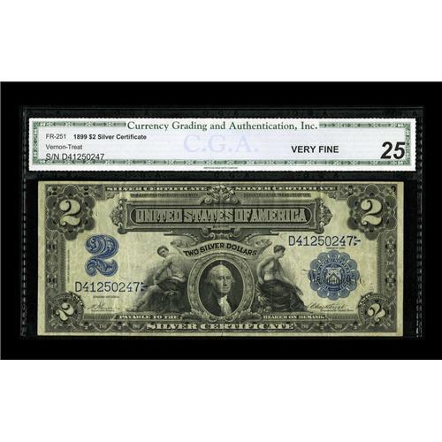 <B>Fr. 251 $2 1899 Silver Certificate CGA Very Fine 25.</B></I> A pleasing example for the grade with nice margins all around.
