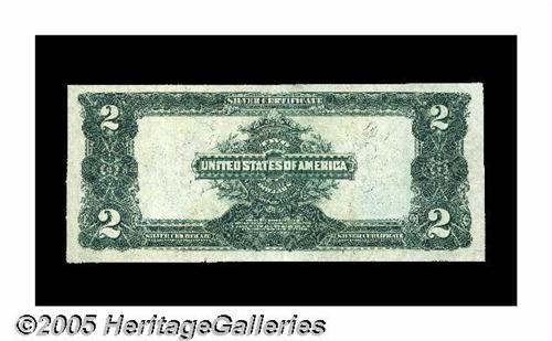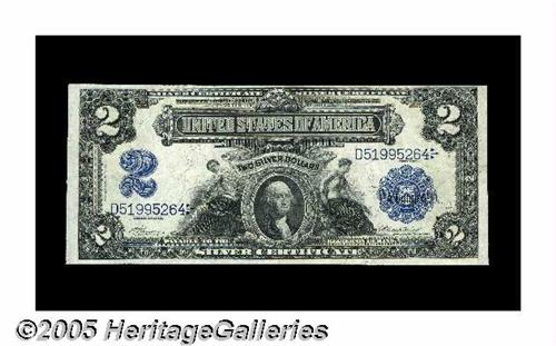 <B>Fr. 251 $2 1899 Silver Certificate Extremely Fine.</B></I> A very nice, lightly circulated example of an 1899 Deuce. The top margin is a little small, but the colors are lovely and the surfaces show good originality.
