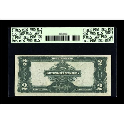 <B>Fr. 251 $2 1899 Silver Certificate PCGS New 62.</B></I> This note appears much higher in grade, though inspection reveals that there is some crinkling that occurred when it was perhaps stored in a book. The colors are still especially bold.<BR><BR><b>Shipping:</b> Coin/Currency (<a target="_blank" href="http://www.heritageauctions.com/common/shipping.php">view shipping information</a>)