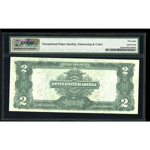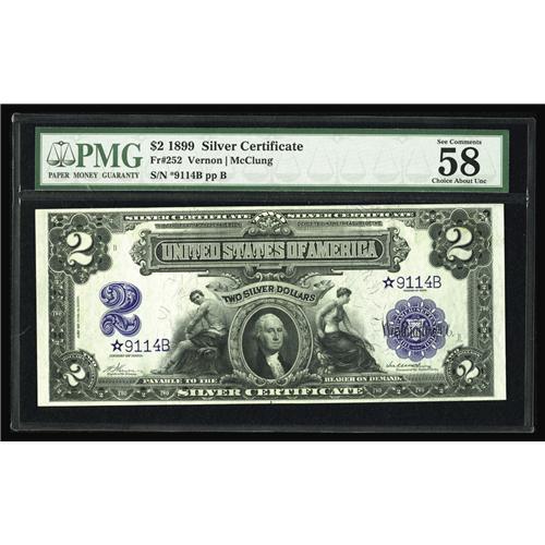 <B>Fr. 252* $2 1899 Silver Certificate Star Note PMG Choice About Unc 58.</B></I> The second of this trio, consecutive and identical to the above lot.