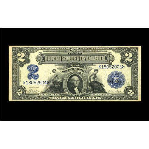 <B>Fr. 253 $2 1899 Silver Certificate Choice New.</B></I> Were this example not so toned, it certainly would qualify for gem as the embossing is pronounced and the margins even.