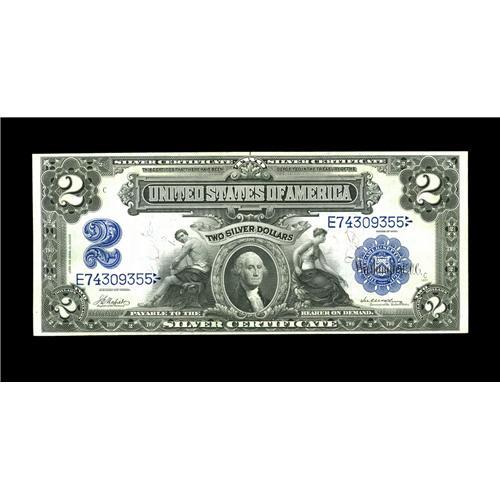 <B>Fr. 253 $2 1899 Silver Certificate Extremely Fine-About New.</B></I> Beautifully detailed surfaces grace this Deuce which has three light folds. Plenty of original embossing shows through.