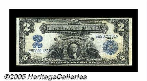 <B>Fr. 253 $2 1899 Silver Certificate Very Fine.</B></I> There is a little soil toward the lower right corner of the face on what is otherwise a clean and perfectly natural example of this popular Silver Certificate type.