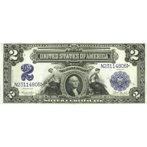 <B>Fr. 256 $2 1899 Silver Certificate Choice New.</B></I> A charming note that has paper ripple to attest to its originality. The top margin is slender, while the overprint is dark.