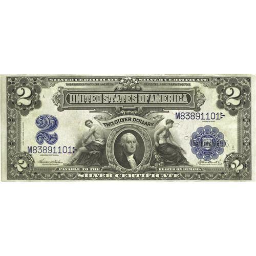 <B>Fr. 256 $2 1899 Silver Certificate Gem New.</B></I> Deep original embossing, excellent margins and fresh bright color are all features of this pretty 1899 Silver Deuce.<BR><I>From The Plymouth Rock Collection</B></I>