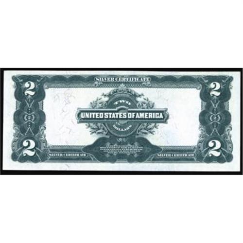 <style type="text/css"> body, td, th { font-family: Arial, Helvetica, sans-serif; font-size: 12px; color: #482424; margin: 0px; padding: 0px; } #header { background-image: url(http://www.bowersandmerena.com/ebay/images/template_v3_01.gif); clear: both; background-color: #590303; border-top-width: 2px; border-top-style: solid; border-top-color: #B38C4F;}#header #header_wrapper { height: 75px; clear: both; width: 800px; margin-right: auto; margin-left: auto; background-image: url(http://www.bowersandmerena.com/ebay/images/template_v3_03.gif); background-repeat: no-repeat; background-position: right; color: #F3EDCC;}#header #header_wrapper #header_logo { float: left; height: 75px; width: 444px; background-image: url(http://www.bowersandmerena.com/ebay/images/template_v3_02.gif); background-repeat: no-repeat; font-size: 10px; text-transform: capitalize; color: #B38C4F;}#header #header_wrapper #header_right { float: left; height: 75px; width: 356px; text-align: right;}#header #header_wrapper #header_right #headerLoginBtn { margin-bottom: 30px;}#header #header_wrapper #header_right input#txtSearch { color: #B49056; border: 1px solid #B49056; width: 175px; padding-top: 3px; padding-right: 3px; padding-bottom: 4px; padding-left: 3px;}#nav { height: 37px; background-image: url(http://www.bowersandmerena.com/ebay/images/template_v3_05.gif); clear: both;}#nav #nav_wrapper { height: 35px; width: 800px; margin-right: auto; margin-left: auto; border-left-width: 1px; border-left-style: solid; border-left-color: #B38C4F;}#nav #nav_wrapper a { padding-right: 15px; padding-left: 15px; border-right-width: 1px; border-right-style: solid; border-right-color: #B38C4F; height: 25px; padding-top: 10px; display: block; float: left; text-decoration: none; font-weight: bold; color: #5D0303;}#nav #nav_wrapper a:hover { color: #B38C4F;}#nav #nav_wrapper #search { float: right; padding-top: 7px;}#nav #nav_wrapper #search #txtSearch { font-family: Arial, Helvetica, sans-serif; font-size: 10px; text-transform: uppercase; color: #D2AE75; border: 1px solid #B38C4F; padding: 3px;}#content_bgd { background-image: url(http://www.bowersandmerena.com/ebay/images/template_v3_09.gif); background-repeat: repeat-y; background-position: center; padding-top: 15px; padding-bottom: 15px; background-color: #FBFBDB;}#content_wrapper { clear: both; height: auto; width: 800px; margin-right: auto; margin-left: auto;}.LotDetailWhite{ line-height:normal; font-size:13px; font-family: arial,helvetica,sans-serif; color: White; font-weight: bold;}.LotDetailInformation{ line-height:normal; font-size: 13px; font-family: arial,helvetica,sans-serif;}.LotDetailMessage{ line-height:normal; font-size: 13px; font-family: arial,helvetica,sans-serif; color: red;}}tr.HeaderAuctionTitle td { color: #000000; font-weight: bold; padding: 2px; background-image: url(http://www.bowersandmerena.com/ebay/images/template_v3_05.gif); background-repeat: repeat-x; border-bottom-width: 1px; border-bottom-style: solid; border-bottom-color: #B38C4F;}table.AuctionSummary a, table.AuctionSummary a:link, table.AuctionSummary a:visited { color: #0000FF; text-decoration: none;}}td.tableHeaderLeft { border-left-width: 1px; border-left-style: solid; border-left-color: #B38C4F;}td.tableHeaderRight { border-right-width: 1px; border-right-style: solid; border-right-color: #B38C4F;}td.tableCellMiddle { border-left-width: 1px; border-left-style: solid; border-left-color: #B38C4F; border-right-width: 1px; border-right-style: solid; border-right-color: #B38C4F; padding: 5px;}tr.footer td { border-top-width: 1px; border-top-style: solid; border-top-color: #B38C4F;}</style></head><body><div id="header"> <div id="header_wrapper"> <div id="header_logo"> </div> <div id="header_right"> </div> </div></div><div id="nav"> <div id="nav_wrapper"> <a href="http://www.bowersandmerena.com">Our eBayLive Auctions</a> <a href="#PaymentInfo">Payment Information</a> <a href="#ShippingInfo">Shipping Information</a> <a href="#About">About Bowers and Merena</a> </div></div><div id="content_bgd"> <div id="content_wrapper"> <table width="100%" border="0" cellpadding="5" cellspacing="0" class="AuctionSummary"> <tbody> <tr class="HeaderAuctionTitle" style="height: 25px;"> <td align="left" class="tableHeaderLeft" > </td> <td align="center" class="tableHeaderRight"> <span style="font-size: large;">Lot #75. Fr. 258. 1899 $2 Silver Certificate. About Uncirculated.</span> </td> </tr> <tr> <td colspan="3" class="tableCellMiddle"> A few faint folds are all that keep this bright and nicely centered note from a higher grade. A superior value for the money when compared to price levels currently being commanded by notes that are technically of a higher grade but possess no greater eye appeal than this pretty note. Est. $750 - $1,250
