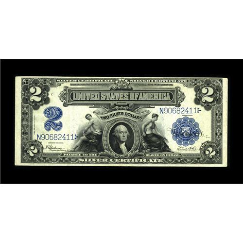 <B>Fr. 258 $2 1899 Silver Certificate Extremely Fine.</B></I> This Deuce was folded into fourths with three vertical folds. It didn't circulate after that, thus preserving this note's dark inks, bright paper, and original surfaces.<BR><BR><b>Shipping:</b> Coin/Currency (<a target="_blank" href="http://www.heritageauctions.com/common/shipping.php">view shipping information</a>)