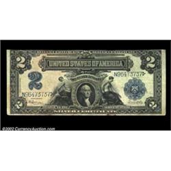 Fr. 258 $2 1899 Silver Certificate Very Fine. The top margin is extremely tight and irregular, and the note has a few stains. The paper is lightly aged. Important notice: We expect to be auctioning lots at the rate of 200-250 per hour. Sometimes eBay Premier live bid software cannot keep up with that pace, so we strongly recommend that you place a realistic proxy bid now as insurance to avoid disappointment. Also please note that all Heritage/CAA lots purchased through eBay Premier carry a 20% Buyer's Premium. Please make sure you read the Terms and Conditions.