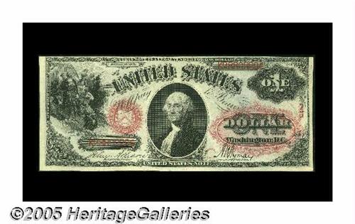 <B>Fr. 26 $1 1875 Legal Tender CGA Choice Uncirculated 63.</B></I> Three boisterous margins are found on this third-party graded $1 Legal.