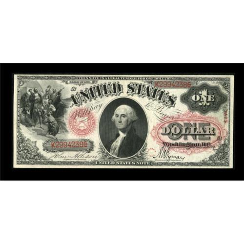 <B>Fr. 26 $1 1875 Legal Tender Choice About New.</B></I> Some light handing is noted, but does not detract from this wholly original issue. There is a lone corner tip fold that catches part of the design which accounts for the grade.<BR><BR><b>Shipping:</b> Coins & Currency (<a target="_blank" href="http://www.heritageauctions.com/common/shipping.php">view shipping information</a>)