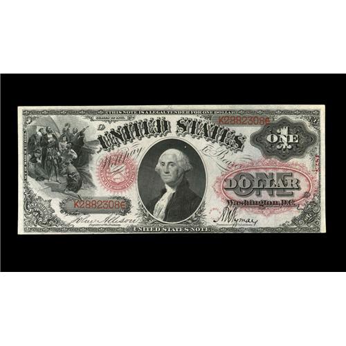 <B>Fr. 26 $1 1875 Legal Tender New.</B></I> The bottom margin touches the frame line, and the note has a fair bit of handling, but it is totally clean and fully Uncirculated, with bright ink as well as bright paper colors.<BR><I>From The Ross Bailey Collection</B></I>