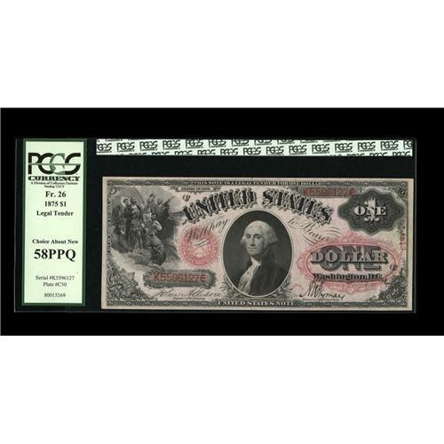 Fr. 26 $1 1875 Legal Tender PCGS Choice About New 58PPQ Fr. 26 $1 1875 Legal Tender PCGS Choice Abou