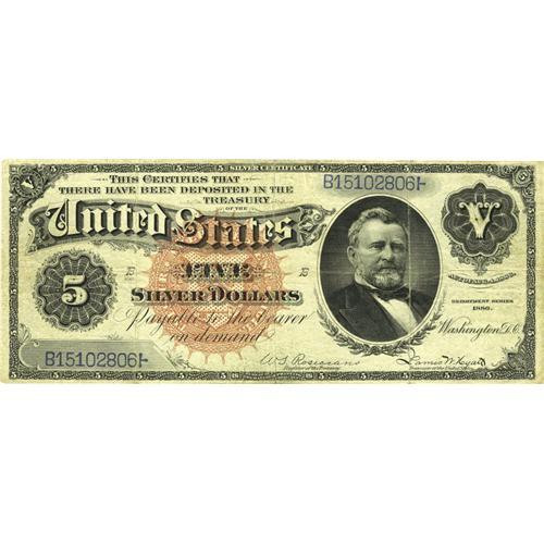 <B>Fr. 261 $5 1886 Silver Certificate Fine-Very Fine.</B></I> Though this original Silver Dollar back is technically Very Fine, we must use a split grade as the folds are a touch heavier than a VF grade would suggest.<BR><I>From The Plymouth Rock Collection</B></I>