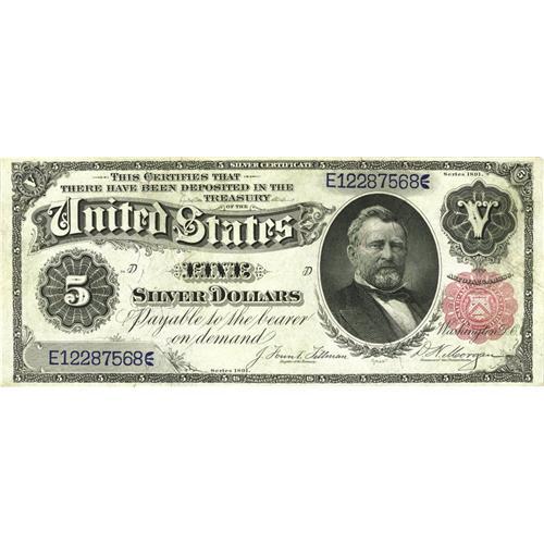 <B>Fr. 267 $5 1891 Silver Certificate Extremely Fine-About New.</B></I> There is a little counting soil at the right, but this 1891 Silver has kept most of the visual allure of an uncirculated note.<BR><I>From The Plymouth Rock Collection</B></I>