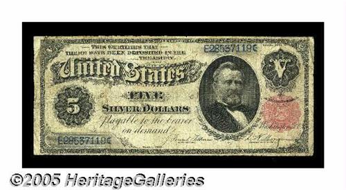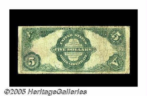 <B>Fr. 267 $5 1891 Silver Certificate Very Good-Fine.</B></I> This $5 is well worn, yet problem-free for the grade.