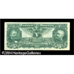 Fr. 268 $5 1896 Silver Certificate Extremely Fine. This <B>Fr. 268 $5 1896 Silver Certificate Choice Extremely Fine.</B></I> This Five Dollar Ed is surrounded by the broadest margins we can ever recall seeing on this type. Both the face and back are perfectly centered. The note has great paper originality and three light vertical folds. A premium Extremely Fine piece, and the ideal note for a high-grade circulated type set. <BR><BR><B>Important notice:</B> Heritage usually auctions material at the rate of 200-250 lots per hour. On some occasions eBay Live bid software or the Internet may not be able to keep up with the pace of the auction. We recommend placing a realistic absentee bid now as insurance to avoid disappointment. Occasionally the auctioneer may eliminate or reject an eBay Live bid, and the auctioneer may also reopen a lot after the close of the eBay live bidding (usually because we missed an audience bid), and may reject your bid even if it shows you as the winning bidder. By bidding via eBay Live, you agree that Heritage may award the lot to another bidder at its sole discretion under the circumstances described above or any other reasonable circumstances. Since eBay bids are not shown to us until we open the lot on the floor, we treat those bids just like floor bids. In most cases the floor responds before the eBay bid is presented to us, due to Internet lag time, so for consistency we have made it a policy that floor bids are always considered first over tie eBay live bids. Also please note that all Heritage lots purchased through eBay Live carry a 20% Buyer's Premium. Please make sure you read the Terms and Conditions before you bid. This lot is being auctioned in conjunction with a live floor auction by Heritage Galleries & Auctioneers. All final auction and invoice information will be supplied by Heritage Galleries & Auctioneers, and all other information should be considered preliminary. Lot:17423