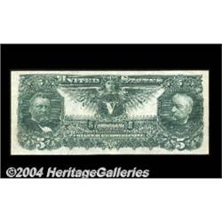 Fr. 268 $5 1896 Silver Certificate Extremely Fine. A handsome Five Dollar Educational, with huge margins, ideal color and sharp printing quality. One of the most sought-after designs in U.S. currency. This example is likely to please the fussiest of collectors. <BR><BR><B>Important notice:</B> Heritage usually auctions material at the rate of 200-250 lots per hour. On some occasions eBay Live bid software or the Internet may not be able to keep up with the pace of the auction. We recommend placing a realistic absentee bid now as insurance to avoid disappointment. Occasionally the auctioneer may eliminate or reject an eBay Live bid, and the auctioneer may also reopen a lot after the close of the eBay live bidding (usually because we missed an audience bid), and may reject your bid even if it shows you as the winning bidder. By bidding via eBay Live, you agree that Heritage may award the lot to another bidder at its sole discretion under the circumstances described above or any other reasonable circumstances. Since eBay bids are not shown to us until we open the lot on the floor, we treat those bids just like floor bids. In most cases the floor responds before the eBay bid is presented to us, due to Internet lag time, so for consistency we have made it a policy that floor bids are always considered first over tie eBay live bids. Also please note that all Heritage lots purchased through eBay Live carry a 20% Buyer's Premium. Please make sure you read the Terms and Conditions before you bid. <BR><BR><B>IMPORTANT ANNOUNCEMENT ABOUT RESERVES:</B> Heritage now divulges all reserves on its web site 7 days before every auction. If you want to know whether the reserve on this lot has been met, and if not, what the reserve amount is, please visit this lot page on the HeritageCoin.com web site, or email: bid@HeritageGalleries.com