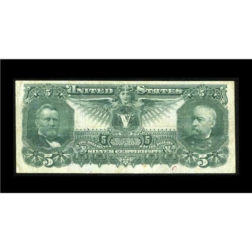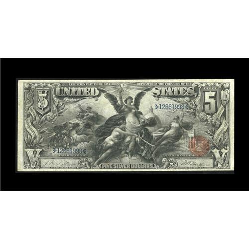 <B>Fr. 268 $5 1896 Silver Certificate Fine+.</B></I> The $5 Educational probably ranks the most recognizable type among collectors. This overall pleasing note that appears to have been wet long ago should generate some attention.