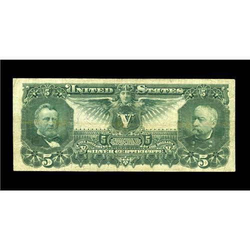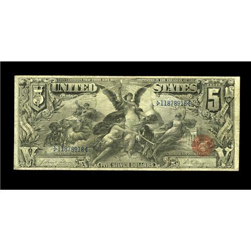<B>Fr. 268 $5 1896 Silver Certificate Fine-Very Fine.</B></I> Here is another nice mid-grade example of this popular series. Only mention is of a tiny nick at left center.