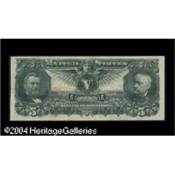 Fr. 268 $5 1896 Silver Certificate Very Fine-Extremel <B>Fr. 268 $5 1896 Silver Certificate Very Fine-Extremely Fine.</B></I> A beautifully margined Five Dollar Ed with original paper surfaces and no problems of any kind. <BR><BR><B>Important notice:</B> Heritage usually auctions material at the rate of 200-250 lots per hour. On some occasions eBay Live bid software or the Internet may not be able to keep up with the pace of the auction. We recommend placing a realistic absentee bid now as insurance to avoid disappointment. Occasionally the auctioneer may eliminate or reject an eBay Live bid, and the auctioneer may also reopen a lot after the close of the eBay live bidding (usually because we missed an audience bid), and may reject your bid even if it shows you as the winning bidder. By bidding via eBay Live, you agree that Heritage may award the lot to another bidder at its sole discretion under the circumstances described above or any other reasonable circumstances. Since eBay bids are not shown to us until we open the lot on the floor, we treat those bids just like floor bids. In most cases the floor responds before the eBay bid is presented to us, due to Internet lag time, so for consistency we have made it a policy that floor bids are always considered first over tie eBay live bids. Also please note that all Heritage lots purchased through eBay Live carry a 20% Buyer's Premium. Please make sure you read the Terms and Conditions before you bid. This lot is being auctioned in conjunction with a live floor auction by Heritage Galleries & Auctioneers. All final auction and invoice information will be supplied by Heritage Galleries & Auctioneers, and all other information should be considered preliminary. Lot:17424