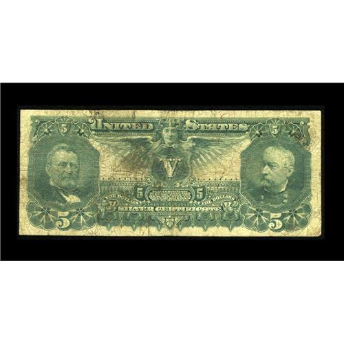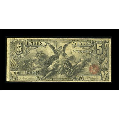 <B>Fr. 268 $5 1896 Silver Certificate Very Good+.</B></I> This ever popular design continues to generate interest and increase the legions of collectors. Typical for the grade, several pinholes are noticed with some light soiling present on the back.