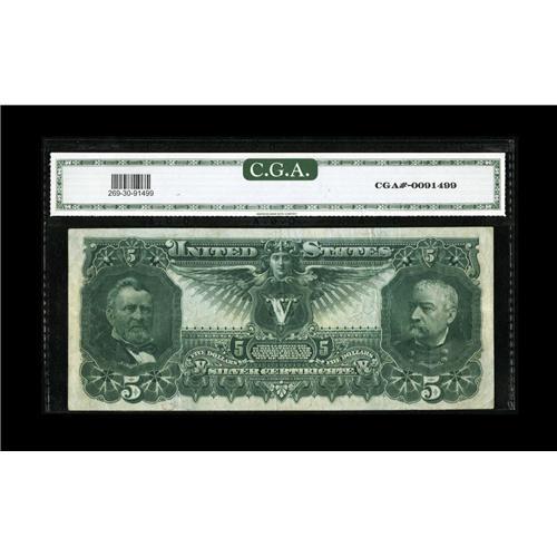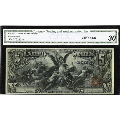 <B>Fr. 269 $5 1896 Silver Certificate CGA Very Fine 30.</B></I> The second scarcest signature combination of the Five Dollar Eds.