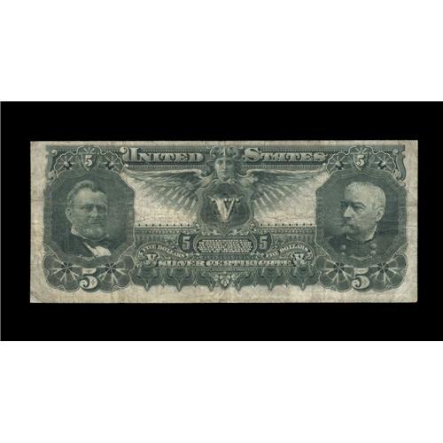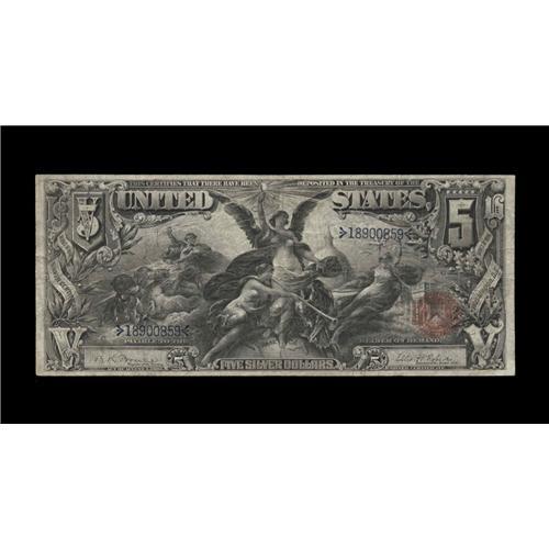 <B>Fr. 269 $5 1896 Silver Certificate Fine.</B></I> But for its normal circulation, this rather handsome low-grade $5 Educational shows no defects whatsoever.