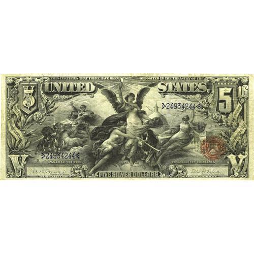 <B>Fr. 269 $5 1896 Silver Certificate Fine-Very Fine.</B></I> This is another wholly original $5 Ed that is closer to VF than it is Fine.<BR><I>From The Plymouth Rock Collection</B></I>