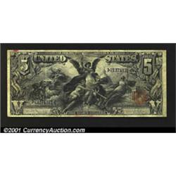 Fr. 269 $5 1896 Silver Certificate Fine.<p>An affordable Educational Five with a couple of pinholes and some minor staining. Important notice: We expect to be auctioning lots at the rate of 200-250 per hour. Sometimes eBay Premier live bid software cannot keep up with that pace, so we strongly recommend that you place a realistic proxy bid now as insurance to avoid disappointment. Also please note that all Heritage/CAA lots purchased through eBay Premier carry a 20% Buyer's Premium.