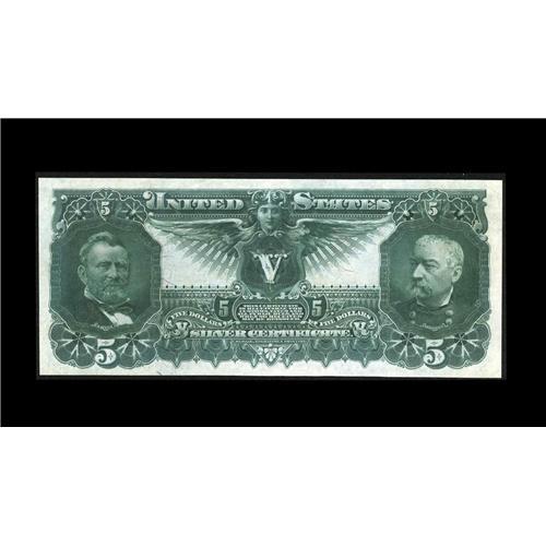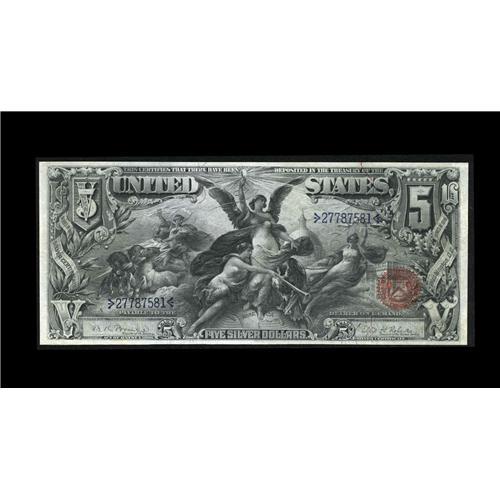 <B>Fr. 269 $5 1896 Silver Certificate Very Fine-Extremely Fine.</B></I> A handsome $5 Educational with broad, even margins, and the appearance of a higher grade. Handsome $5 Educationals are always in great demand and we would expect this piece, in spite of a few small pinholes, to attract quite a bit of attention.