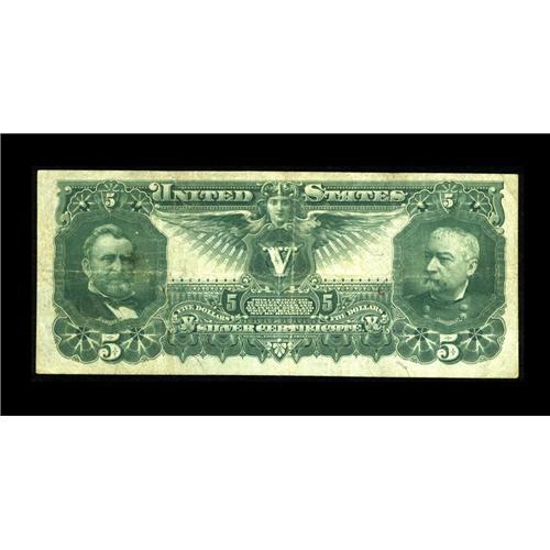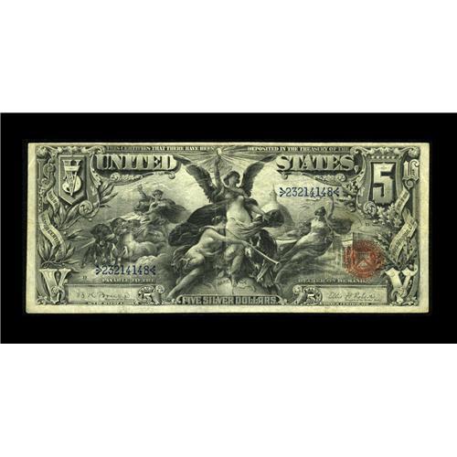 <B>Fr. 269 $5 1896 Silver Certificate Very Fine.</B></I> This nicely margined Five Dollar Educational is centered somewhat high on the back, and the paper a bit flat. The note has retained excellent color, and it has a very nice overall appearance.<BR><BR><b>Shipping:</b> Coin/Currency (<a target="_blank" href="http://www.heritageauctions.com/common/shipping.php">view shipping information</a>)