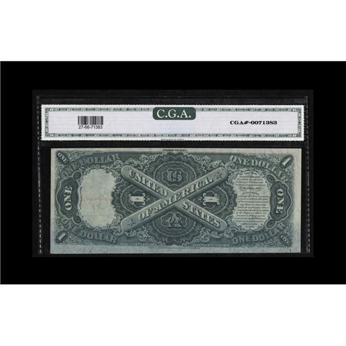 <B>Fr. 27 $1 1878 Legal Tender CGA Gem Uncirculated 66.</B></I> This 1878 Ace has ideal color of the inks and paper. A very pretty note.
